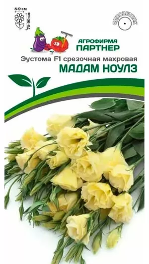 Чарующие и торжественные, порой трепетные и трогательные - эустомы создают особое настроение, украшая наши цветники. МАДАМ НОУЛЗ - пленительная романтичная красавица светится изнутри теплыми летними полутонами приглушенного желтого цвета. Роскошные махровые цветки, достигающие в диаметре 9 см, начинают раскрываться один за другим в начале лета и радуют до сентября. Одно растение с несколькими распустившимися цветками и множеством нераскрытых бутонов выглядит как готовый букет. Плотные атласные лепестки цветков хорошо держат форму и долго сохраняют свежесть в срезке. Такие качества высоко ценятся как в цветоводстве, так и во флористике. Серия надежная, выносливая и устойчивая к капризам погоды и болезням, в том числе и к серой гнили (Botrytis). Чтобы уже в начале лета наслаждаться цветением, стоит своевременно позаботиться о выращивании рассады. Рекомендуемый объем кашпо - 5-8 л на одно растение или схема посадки в грунт – 25х25 см.