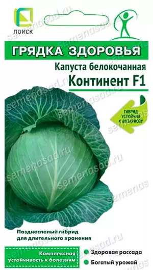Капуста белокочанная Континент F1 - поздний гибрид 125-135 дней от высадки рассады