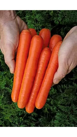 Среднеранний гибрид моркови сортотипа Нантская для длительного хранения. Готов к сбору урожая через 110-120 дней после всходов. Морковь массой 85-170 г, цилиндрической формы с тупым кончиком, однородного ярко-оранжевого цвета снаружи и внутри, с сердцевиной небольшого размера. Ботва имеет прочное прикрепление к корнеплоду. Гибрид отличается высоким содержанием сахаров и каротина. Вкусовые качества корнеплодов отличные. Рекомендуем использовать морковь не только на переработку, но и для употребления в свежем виде. Гибрид устойчив к альтернариозу (Ad), мучнистой росе (On), бактериальной пятнистости листьев (Xhc) и церкоспорозу (Cc). Транспортабельность и лежкость плодов великолепные. Урожайность – 5,0-7,0 кг/м².