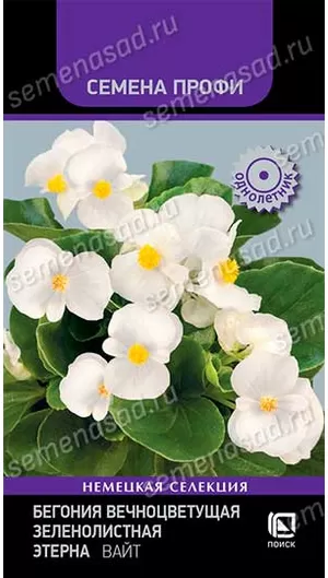 Яркие цветы на фоне глянцевой зелёной листвы! Растение шаровидной формы высотой 20-25 см. Цветы простые многочисленные белого цвета. Листья зелёные, мясистые, блестящие, округло-сердцевидные. Цветение обильное и продолжительное. Используют в ландшафтном дизайне для посадки на клумбы и цветники, как контейнерное растение.