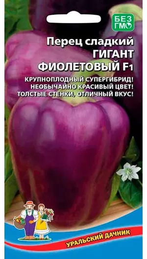 Раннеспелый урожайный гибрид европейской селекции с плодами фиолетового цвета, предназначенный для выращивания в открытом грунте и пленочных теплицах. Растение низкорослое (35- 50 см), подходит для разведения в зонах рискованного земледелия под пленочными укрытиями. В биологической спелости плоды приобретают необычную темно-фиолетовую окраску, после созревания окраска постепенно меняется на светло-коричневую. Плоды овально-конусовидной формы с округлой вершиной и толстыми стенками (5-7 мм), массой до 100 г. Мякоть сладкая, сочная, с приятным вкусом.