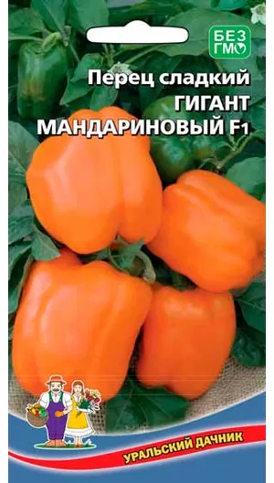 Среднеранний гибрид для открытого и защищённого грунта. Растение мощное, полураскидистое, среднерослое, высотой 60–70 см. Плоды пониклые кубовидные, цвета спелого мандарина, массой 140–160 (до 200) г, толщина стенки 8–10 мм, очень сочные. Вкусовые качества высокие. Урожайность 7,5–8 кг/м².
