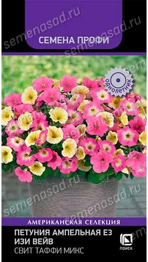 Более раннее цветение, по сравнению с серией Easy Wave. Высота растения 15-30 см, ширина куста 60 см. Множество крупных цветков диаметром 5-7 см. Растения хорошо разрастаются, формируя плотный куст с крупными цветками и лишь потом разрастаются в стороны. Яркая гармоничная смесь состоит из трех окрасок - белой с желтыми жилками, ярко-розовой и розовой с белой горловиной. Трехмерный ландшафтный эффект для создания впечатляющих корзин и вазонов.