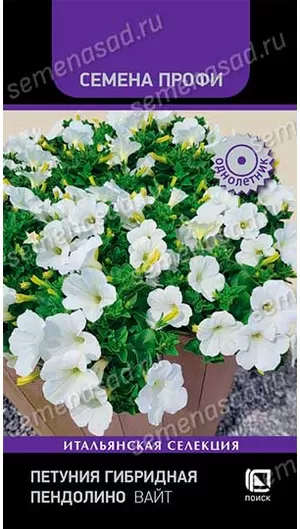 Растение напоминает калибрахоа: длинные ниспадающие побеги, достигающие в длину до 1 метра, направлены вверх и в стороны, благодаря этому середина куста никогда не бывает пустой. Относится к группе минимультифлора. Размер цветка 2-3 см. Окраска белая. Непрерывно цветёт с ранней весны до поздней осени, благодаря гену мужской стерильности. Высокая устойчивость как к повышенным, так и пониженным температурам. Быстро восстанавливается после дождей. Подходит для крупных кашпо и ландшафтного дизайна.