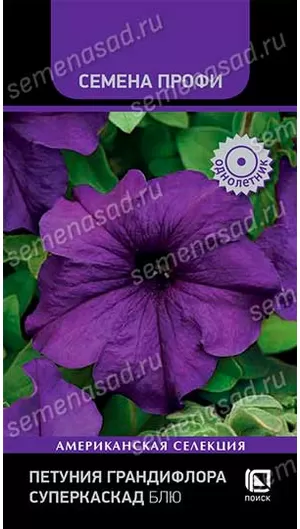 Растение хорошо облиственные с прекрасным ветвлением. Высота растения 20-35 см. Диаметр цветка 10-13 см. Окраска синяя. Цветение продолжительное и обильное. Короткий период выращивания. Идеально подойдёт для создания смешанных или монокомпозиций в вазонах, балконных ящиках или в открытом грунте.