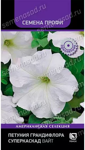 Растение хорошо облиственные с прекрасным ветвлением. Высота растения 20-35 см. Диаметр цветка 10-13 см. Окраска белая. Цветение продолжительное и обильное. Короткий период выращивания. Идеально подойдёт для создания смешанных или монокомпозиций в вазонах, балконных ящиках или в открытом грунте.