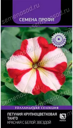 Растения компактные, хорошо ветвящиеся, выровненные по габитусу. Высота растения – 25-35 см. Окраска двухцветная - красная с белой звездой. Диаметр цветка 8-10 см. Цветение раннее, обильное с июня до осенних заморозков. Идеально подходит для озеленения. Используют для посадки в горшки, контейнеры и открытый грунт.