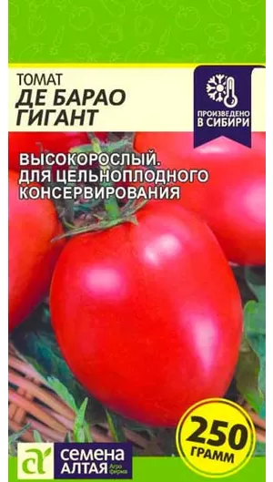 Позднеспелый (120-125 дней) сорт для выращивания в открытом грунте и пленочных теплицах. Растение индетерминантное, высотой более 2 м, требует подвязки и пасынкования. Плоды сливовидные, плотные, красные, с зеленым пятном у плодоножки, массой 100-250 г, отличных вкусовых качеств. Используется для потребления в свежем виде и цельноплодного консервирования. Сорт характеризуется высокой урожайностью, холодостойкостью, слабо поражается фитофторозом.