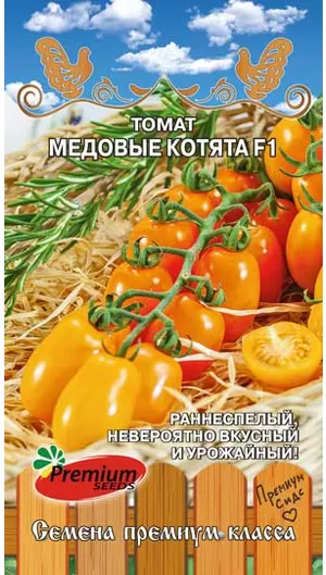 Невероятно вкусный и красочный раннеспелый (90-95 дн.) высокорослый гибрид томатов черри для выращивания в открытом грунте на опорах, стеклянных и пленочных теплицах. Растение просто усыпано сияющими овально кубовидными плодами янтарно-оранжевого цвета весом по 20-25 г. Черри в кисти созревают равномерно, очень высокого качества, лежкие, сочные и транспортабельные с насыщенным ароматом и уникальными вкусовыми качествами. Содержат большое количество антиоксидантов и сахаров. Используются для свежего потребления, украшения фуршетных столов, а также для цельноплодного консервирования. Гибрид устойчив к фузариозному и вертициллёзному увяданию, бурой пятнистости, вирусу томатной мозаики.