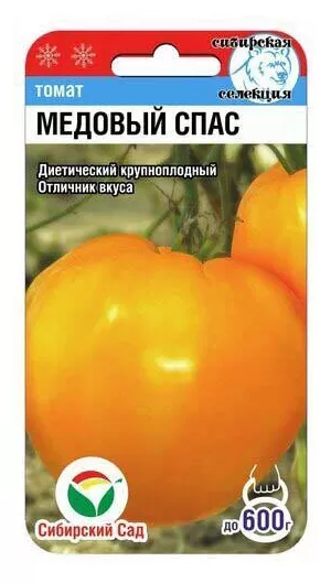 Крупноплодный, среднеспелый сорт для теплиц и открытого грунта. Выделяется крупными почковидными плодами теплого медово-желтого цвета, массой до 600 г. Мякоть томатов очень приятная, сладкая, почти без кислот, полезна для питания людей с заболеваниями кишечного тракта. Растение высотой 120-160 см, в зависимости от условий выращивания. Урожайность составляет 4-5 кг с растения.