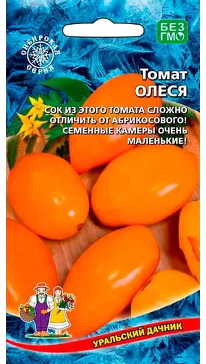 Среднеспелый сорт томатов, предназначенный для выращивания в условиях стеклянных теплиц или плёночных укрытий. Растение высотой 1,5–2 м, формирует красивые кисти с 4–5 крупными оранжевыми плодами сливовидно-овальной формы, массой до 250–300 грамм. Томаты обладают сладким вкусом, по цвету и высокому содержанию каротина сок из плодов напоминает абрикосовый, полезен детям. Плоды очень плотные, прекрасно консервируются, хороши в летних салатах. Урожайность до 8-10 кг/м2.