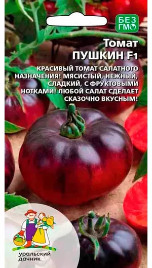 Среднеспелый, индетерминантный гибрид. Высота растений в защищённом грунте достигает 1,7-2 м. Период от всходов до получения урожая 110-113 дней. При наступлении технической спелости зелё ные завязи постепенно приобретают насыщенную фиолетовочёрную окраску. Употреблять томаты начинают при появлении на этом темном фоне ярко-красных полос и боков. Масса плодов около 180-200 г, при хорошем уходе вес первых томатов превышает 350 г. Мякоть красная, мясистая, сладкая. Необычная окраска томатов внесет разнообразие в привычные овощные салаты и закуски.