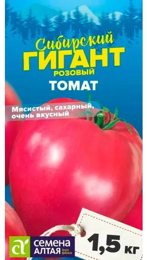 Серия Сибирский Гигант – богатырский размер плодов и богатый урожай. Среднеспелый сорт для выращивания в открытом грунте и пленочных укрытиях. Растение индетерминантное, высотой 150-200 см. Особенностью является высокая нагрузка на первых трех соцветиях, формируется по 4-6 сердцевидных малиново-розовых плодов-великанов средней массой 600-800 г, при правильном уходе и формировании они достигают массы до 1,5 кг. Восхитительный вкус сочной и сладкой мякоти с малым количеством семян подарит вам райское наслаждение при употреблении как в свежем виде, так и в любых блюдах и заготовках.
