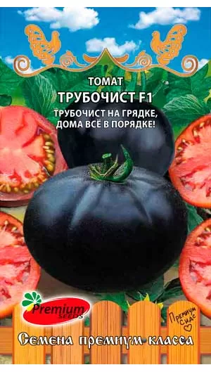 Среднеспелый (110-115 дней), индетерминантный (190-200 см), очень урожайный сорт для выращивания в открытом грунте, стеклянных и пленочных теплицах. Обладает уникальными, крупными, практически черными плодами массой до 300 г. Плоды с очень высокими вкусовыми и потребительскими качествами. Хороши как в свежем виде, так и в переработке.