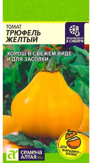 Детерминантный сорт, куст компактный, высотой 50-70 см. Плоды трюфелеобразные, желтые, в кисти 5-7 плодов очень высоких вкусовых качеств, сладкие, плотные. Хороши в свежем виде и для засолки.