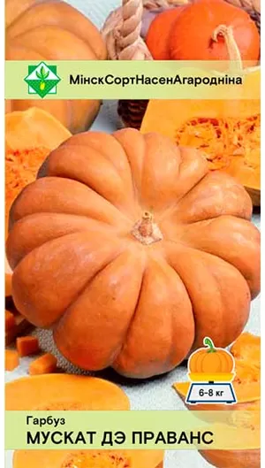 Среднепоздний урожайный сорт мускатной тыквы французской селекции. От всходов до начала уборки 120-130 дней. Растение длинноплетистое. Плоды плоско-округлые, ребристые, в технической спелости серовато-зеленые, в биологической – оранжево-коричневые, массой 6-8 кг. Мякоть ярко-оранжевая, не волокнистая, ароматная, сладкая, вкусная. В комнатных условиях хранится до 5 месяцев.